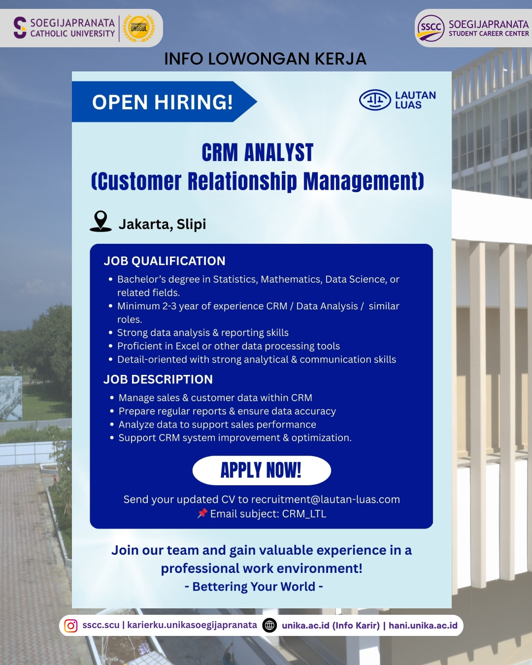 PT. Lautan Luas, Tbk. is now hiring for Customer Relationship Management