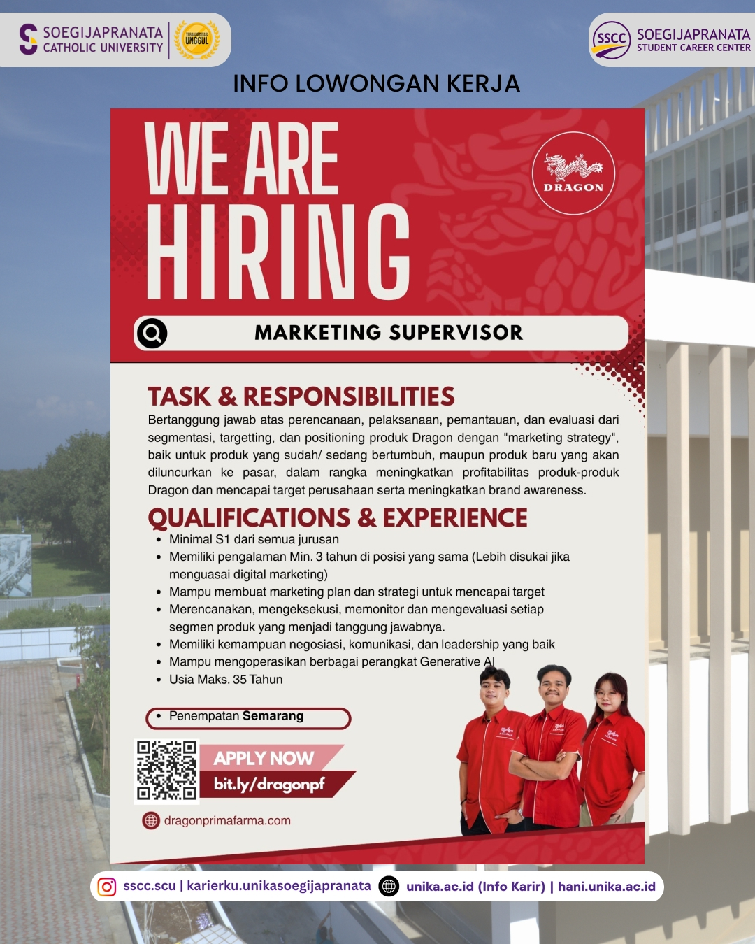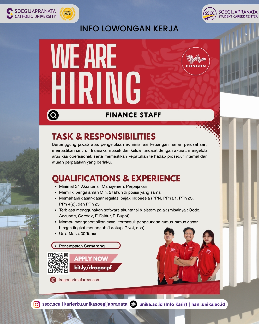 - Pendidikan minimal S1 Teknologi Pangan atau sejenisnya (wajib yang mempelajari mengenai pangan)