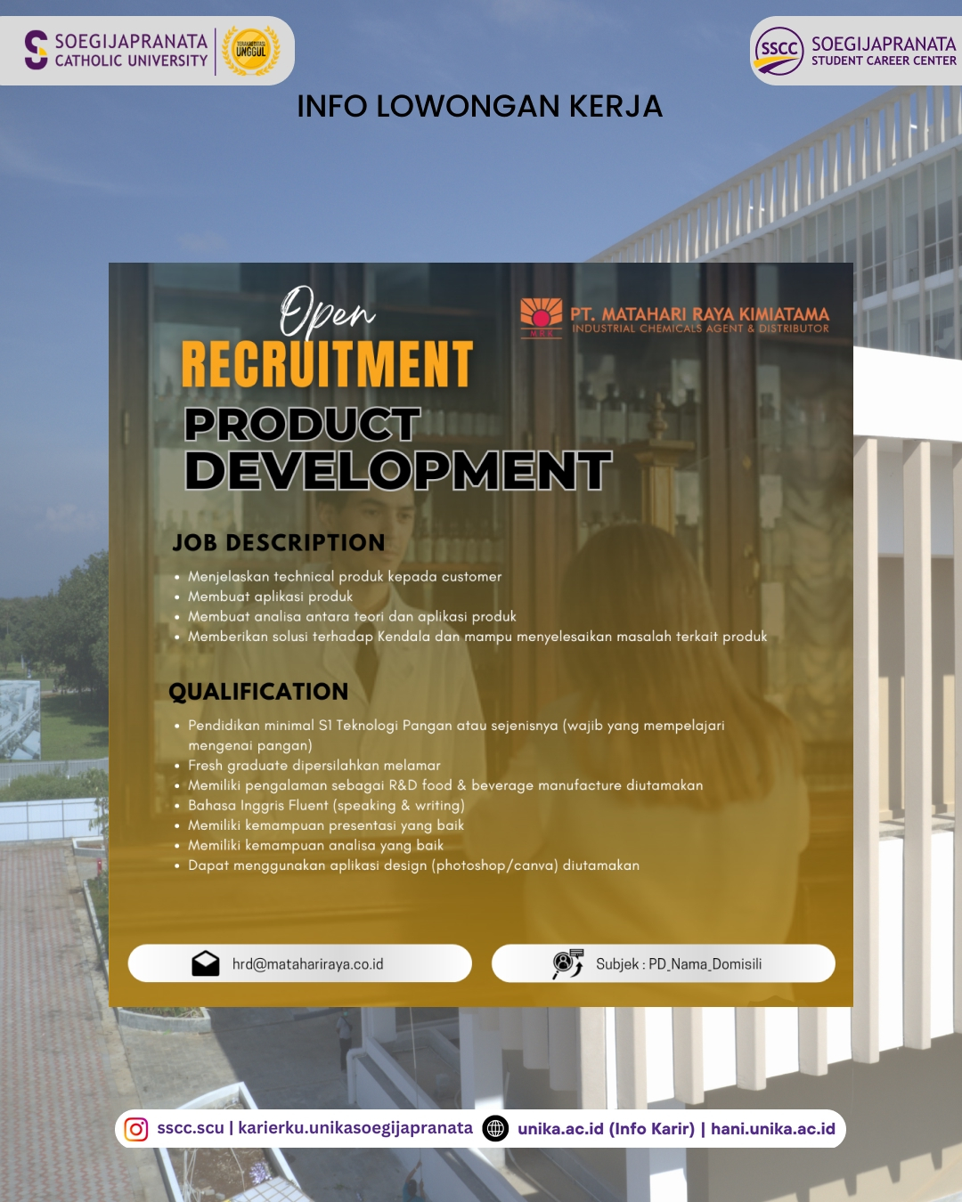 PT. Matahari Raya Kimiatama is now hiring for Product Development